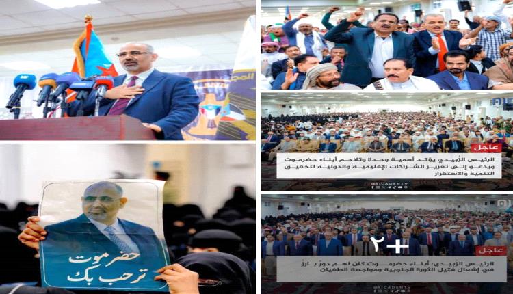 بدأ الرئيس الزبيدي حديثه بتأكيد أن حضرموت ليست مجرد أرض جنوبية فحسب، بل هي أم تحتضن أبناءها، وأبناءها من الجنوب وأبناءها اليوم هم أهلها وهم الأجدر بإدارة أرضهم وثرواتها، مع رفض أي محاولات لاستغلالها أو زعزعة أمنها.