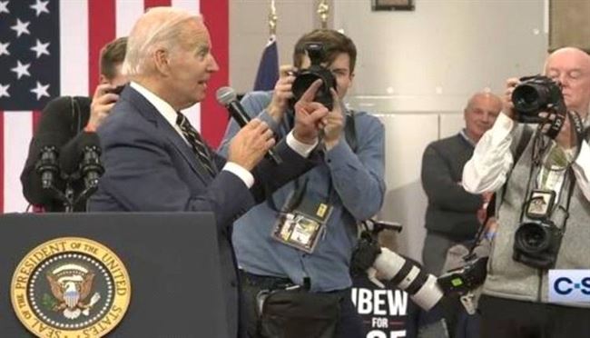 وظهر بايدن في مقطع فيديو انتشر عبر منصات التواصل الاجتماعي، وهو يسرع إلى المنصة خلال مؤتمر في ميشيغان، والتقط الميكروفون، في حماسة زائدة، صارخاً في الحشد: "الولايات المتحدة هدف وإيران صفر، المباراة انتهت!".