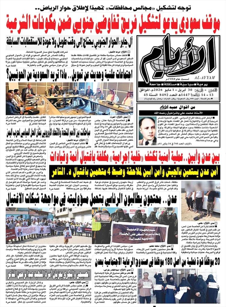 الخميس - 30 أبريل 2026 - الساعة 01:46 ص بتوقيت العاصمة عدن