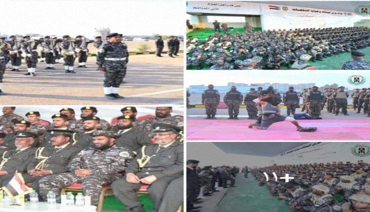 وأقيم حفل التخرج في معسكر الصولبان بالعاصمة عدن، بحضور قائد حزام حرس المنشآت العميد أحمد مهدي بن عفيف وعدد من صف الضباط.