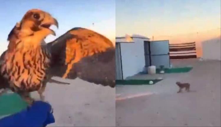 وتداول رواد مواقع التواصل الاجتماعي مقطع الفيديو، حيث ظهر الصقر وهو يطير في الهواء، وإذ به يهبط سريعا إلى المخيم ويهاجم العاملة التي راحت تصرخ وتجري في الخارج.